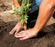 Когда вода впитается, засыпьте яму землей так, чтобы корневая шейка была на уровне с поверхностью.